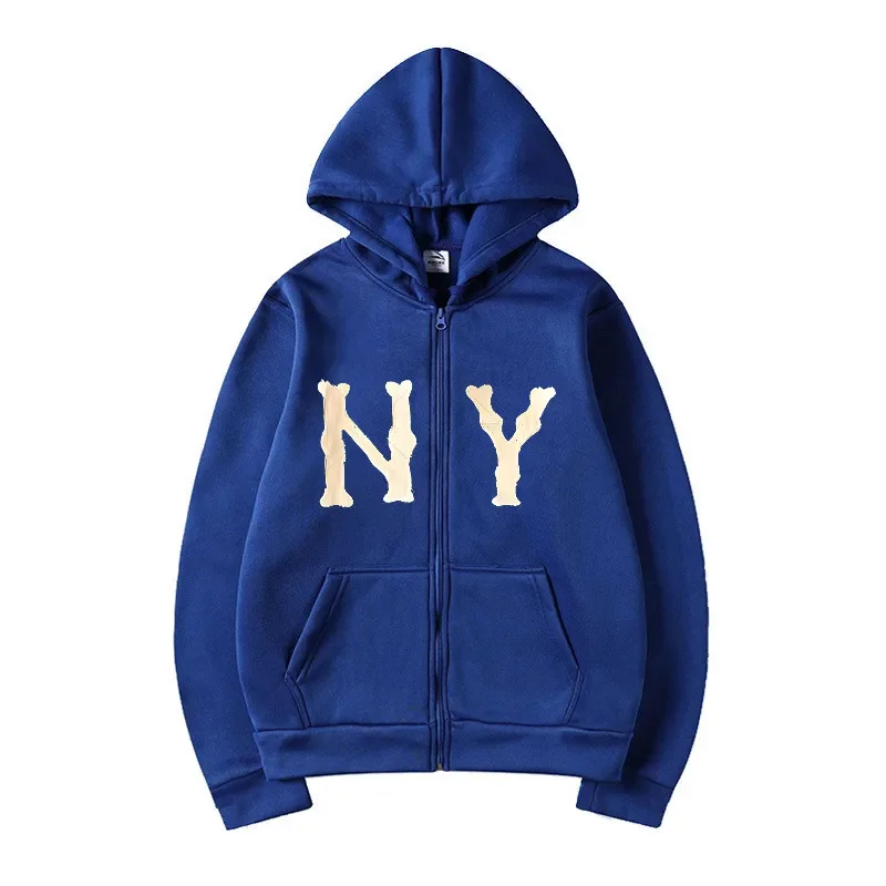 Comfortable Hoodie Sports and Leisure One Piece Hoodie Letter NY Print Y2 Men's and Women's Zipper Hoodie Autumn and Winter