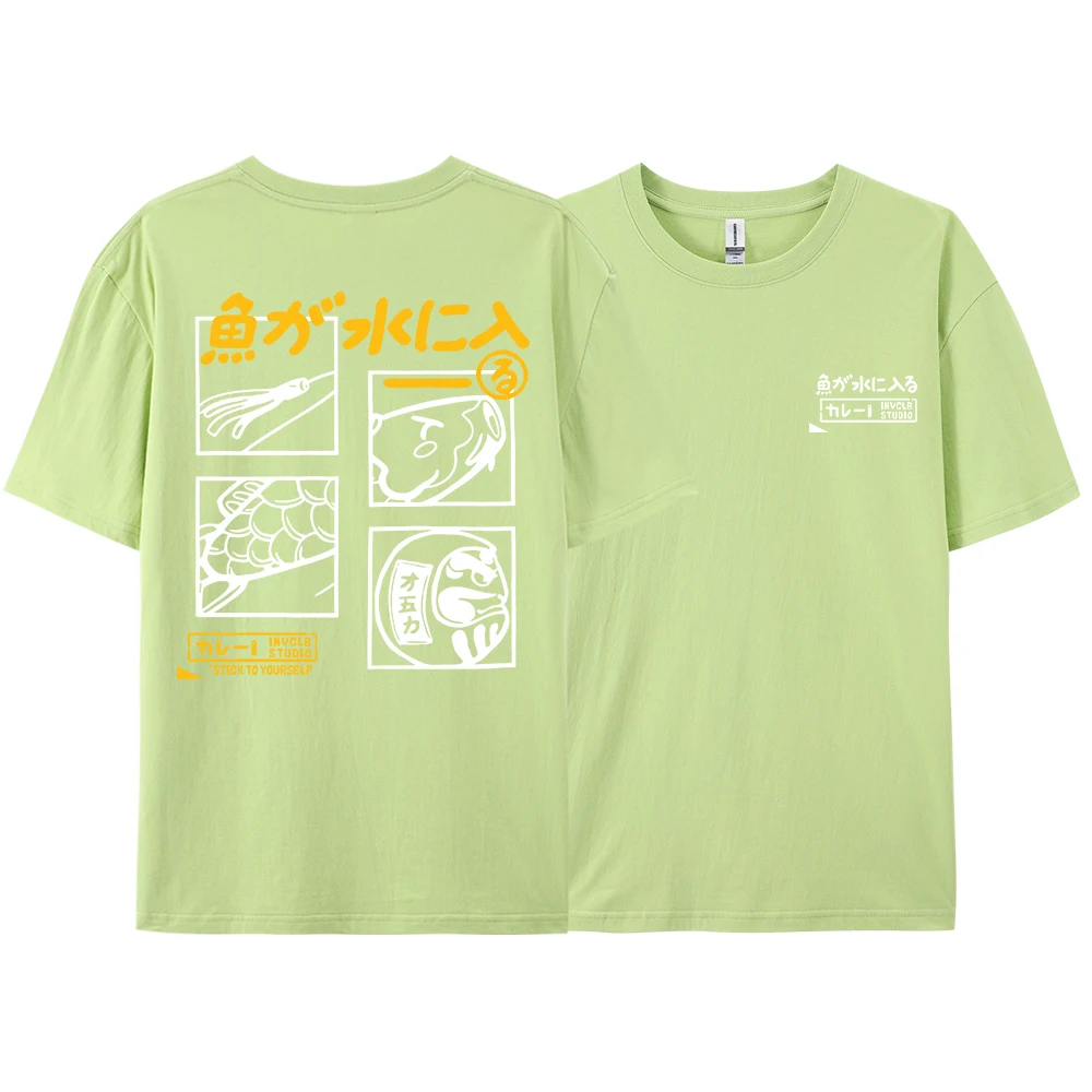 Japanese Retro Fashion Fish T-shirt Men Women Short Sleeved Oversized Loose Bf Style Couple Student Half Sleeved Funny Top Tees